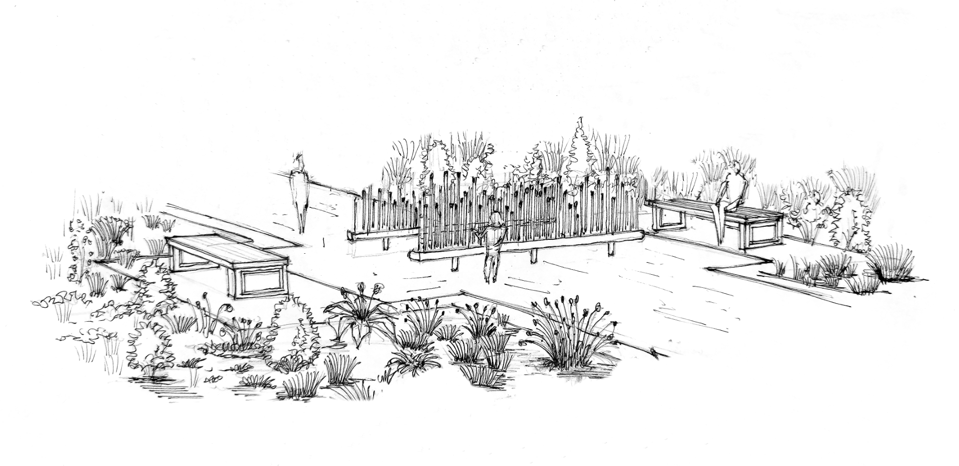Obambalo used the form of a crater as a res extensa of the irregular rock formations in the Matobo Hills – a reclining couch to encourage a gaze upwards into the sky at night from the orphanage garden.